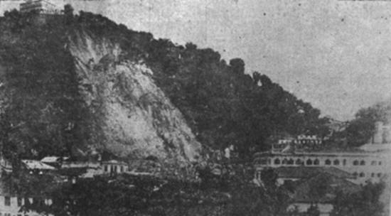 Um aspecto geral do Monte Serrat, vendo-se a parte onde se deram os últimos desmoronamentos