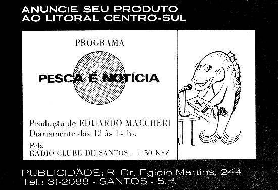 Anúncio de programa da emissora, na primeira edição da revista Pesca em Revista, publicada pelo mesmo produtor Eduardo Maccheri com a Davidson Publicidade, em dezembro de 1975