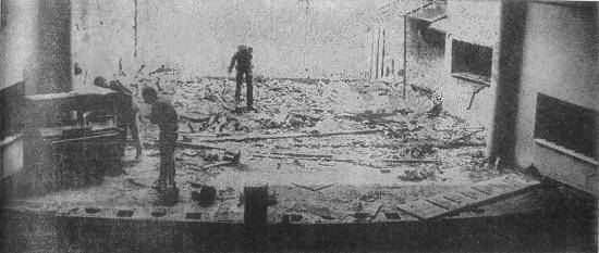 estúdios". Foram completamente destruídos o palco e quarenta por cento da discoteca, com a inutilização de, aproximadamente, quatro mil discos.