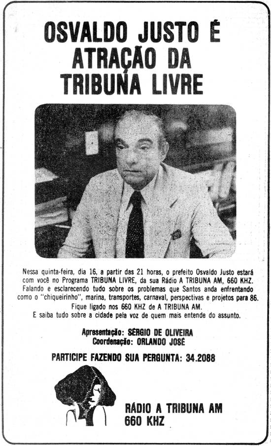 Na gostosa cidade de Santos-SP, no dia 31 de julho de 1961, graças ao entusiasmo de Giusfredo Santini e Roberto Mário Santini, proprietários do jornal A Tribuna, nasceu a Rádio A Tribuna - AM - ZYR-252. Sobre esse veículo somos suspeitos para falar, já que, convidados que fomos pelos Santini, integramos a equipe que implantou aquela emissora, na baixada paulista, cuidando de seu planejamento, sua filosofia e de seus objetivos junto ao público radiouvinte, na posição de seu primeiro diretor-gerente.