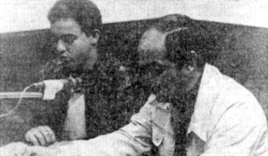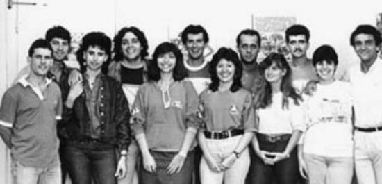 Locutores e pessoal administrativo da rádio A Tribuna AM, em 1986.