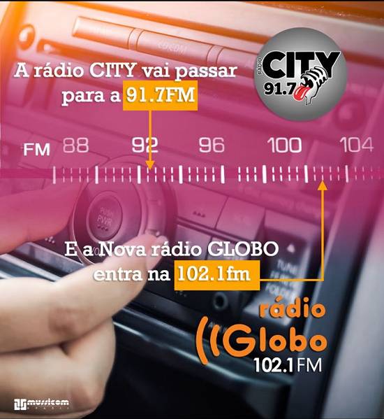 Rádio City passa frequência 91.7 FM e a nova Rádio Globo entra na faixa 102.1 FM