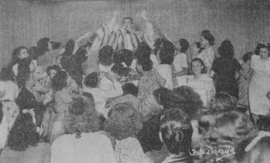 E para demonstrar o quanto Jorge del Prado era apreciado publicamos esta fotografia que nos mostra o consagrado cantor mexicano, num dia de programa, fazendo distribuição de fotografias às suas inúmeras fãs.