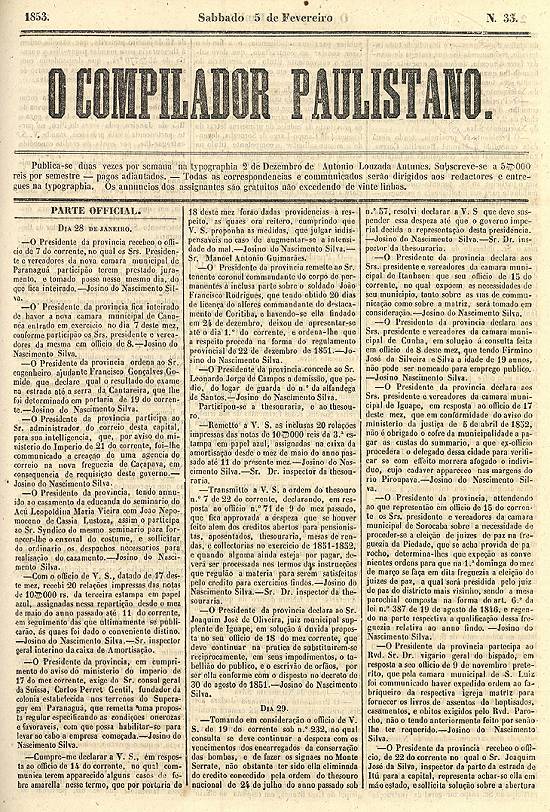 Num sábado, 5 de fevereiro de 1853, na primeira página de sua edição nº 33, o jornal