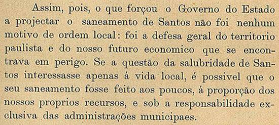 Uma vez, portanto, que o Estado não fez o saneamento de Santos senão dominado pelas mais prementes
