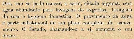 em 1897, quando o Estado já tinha dado começo às obras do saneamento. Ora, não se pode sanear, a sério, cidade alguma,