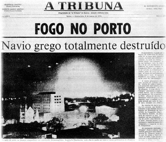 Manchete do jornal A Tribuna de Santos, em 9 de janeiro de 1974