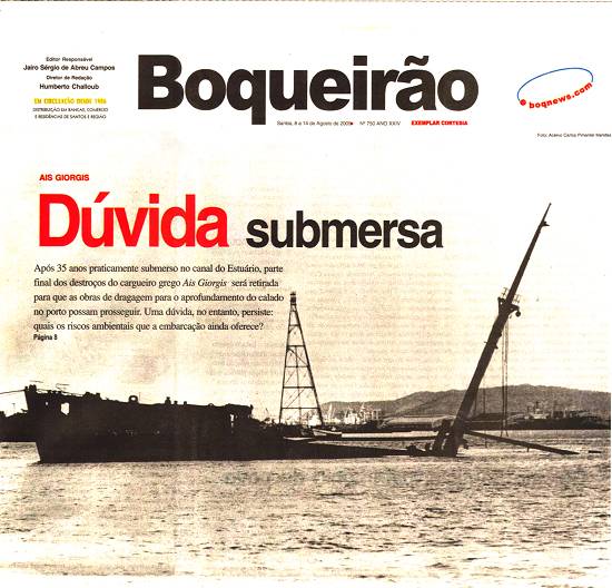Na edição de 8 a 14 de agosto de 2009, páginas 1 e 8, o semanário santista Boqueirão News