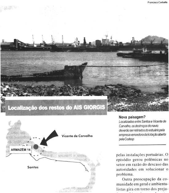 sucatas do Ais Giorgis. No entanto, por problemas técnicos no momento da remoção, uma parte do casco do cargueiro ainda ficou parcialmente