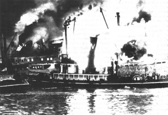 capitão e entrando o seu substituto. No final da tarde, o navio começou a pegar fogo e, quando soube, dirigi-me para o cais", lembra.