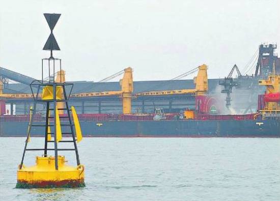 Área do Canal do Estuário onde estão submersos os restos do cargueiro é sinalizada por uma bóia
