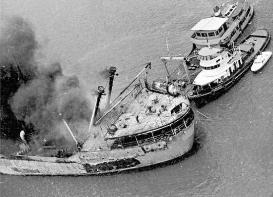 Em 8 de janeiro de 1974, o navio, ainda em chamas, foi rebocado até o meio do canal de navegação