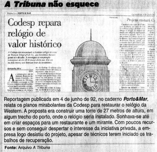 presenciaram o descaso com o relógio da Western. Ele trabalhava na estatal no início dos anos 90, quando cogitou-se reativar o relógio.