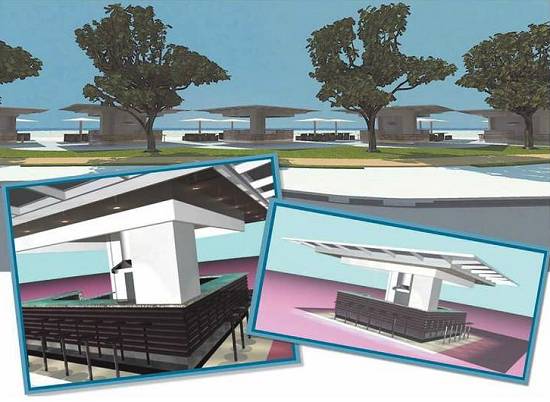 sanitários e as lixeiras dos quiosques serão rebaixados, mas não totalmente enterrados, para dar mais visibilidade à praia. A publicidade também