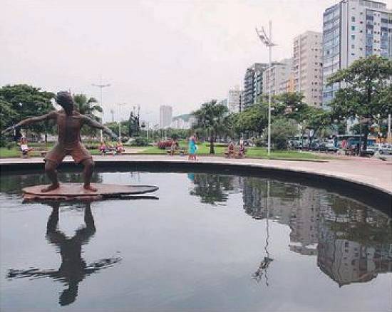Uma das atrações do jardim da orla, no trecho do bairro, é o surfista