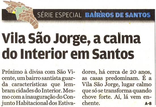 VILA SÃO JORGE, A CALMA DO INTERIOR EM SANTOS - Próximo à divisa com São Vicente, um bairro