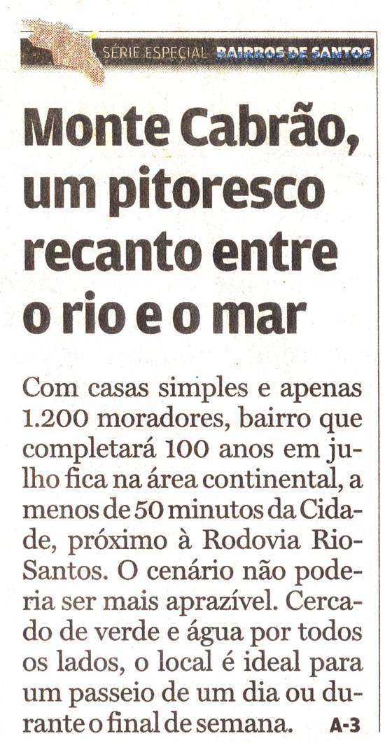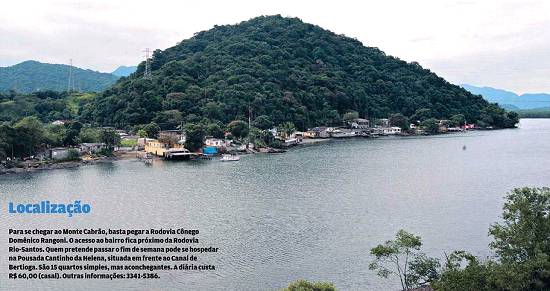 acidentada, às margens do Canal de Bertioga. Ali vive parte considerável da população do Monte Cabrão, bairro da área continental, que completa