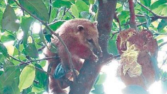 Os quatis podem ser vistos com facilidade nos galhos das árvores