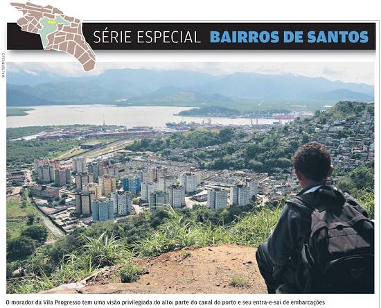 O morador da Vila Progresso tem uma visão privilegiada do alto: parte do canal do porto e seu