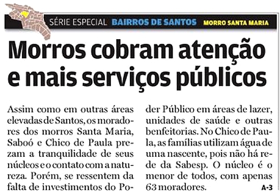 MORROS COBRAM ATENÇÃO E MAIS SERVIÇOS PÚBLICOS - Assim como em outras áreas elevadas de Santos,