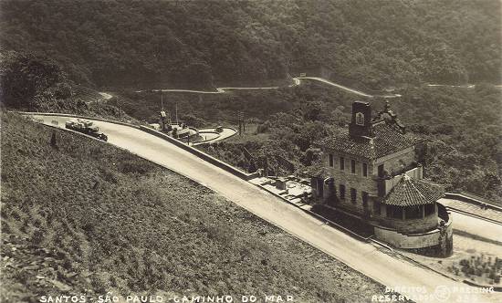 Pouso de Paranapiacaba, no Caminho do Mar, por volta de 1940. É o lugar de onde o viajante a caminho de Santos vê o mar pela primeira vez