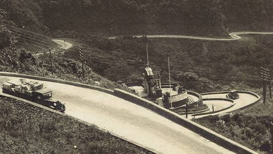 Rancho da Maioridade, no Caminho do Mar, por volta de 1940, vendo-se também, mais ao fundo, o Belvedere Circular