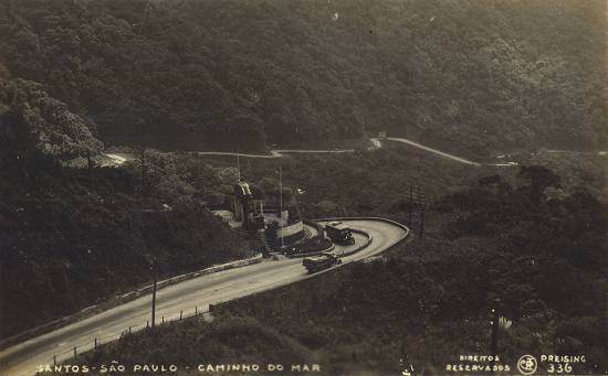 Caminho do Mar: alto da Serra, entre Santos e São Paulo, em cartão postal Wessel, cerca de 1940