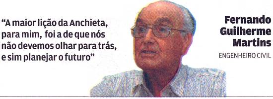"A maior lição da Anchieta, para mim, foi a de que nós não devemos olhar para trás, e sim planejar o futuro" - Fernando Guilherme Martins, engenheiro civil.