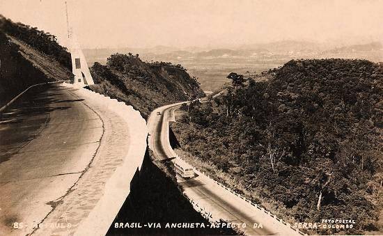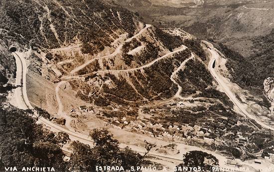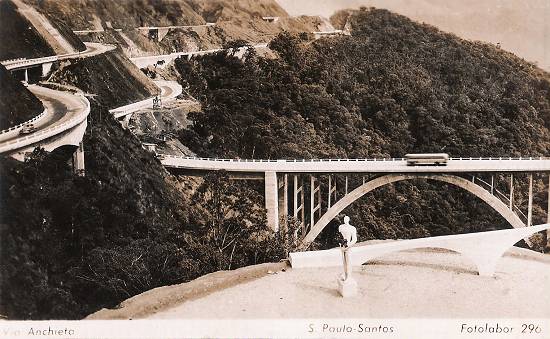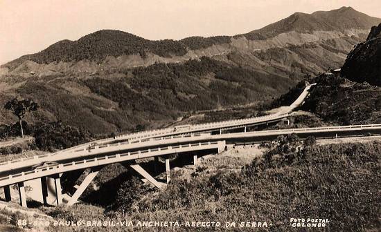 A Via Anchieta, em cartão postal da década de 1950: viadutos na serra do mar