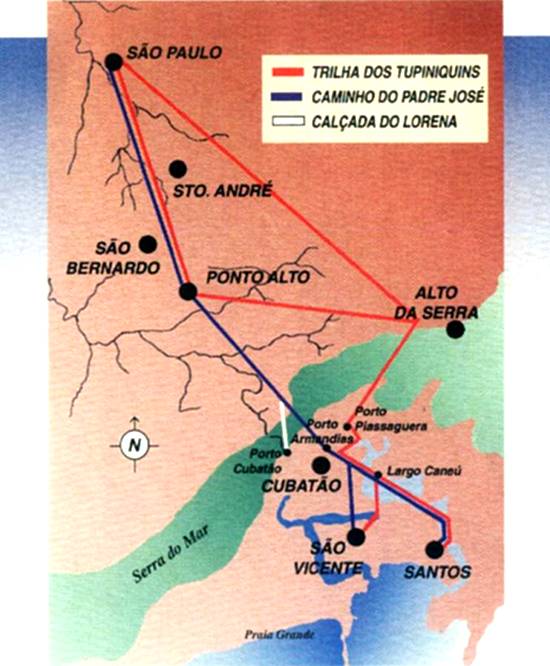 Quem percorre hoje qualquer uma das rodovias ou ferrovias que ligam o litoral ao planalto, especialmente a Imigrantes, não faz a mais remota idéia das dificuldades que os primeiros colonizadores enfrentavam para transpor a Serra do Mar. Especialmente nos três primeiros séculos de colonização, essa viagem era uma verdadeira aventura.