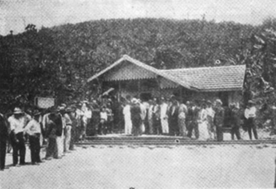 Estação Estaleiro (provisória em uma casa de tábuas) inaugurada em 15-2-1930