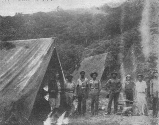 A turma telegráfica no acampamento. Feitor Alfredo Silva e trabalhadores,