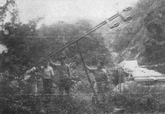 As turmas colocavam os postes e fios por cima dos túneis, porém, como o mato crescia e