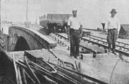 linha Mayrink-Santos na ponte nº 4, próximo à estação Chapéu, passando a locomotiva nº 280 que, de Mayrink, fora escalada para esse fim, tendo por