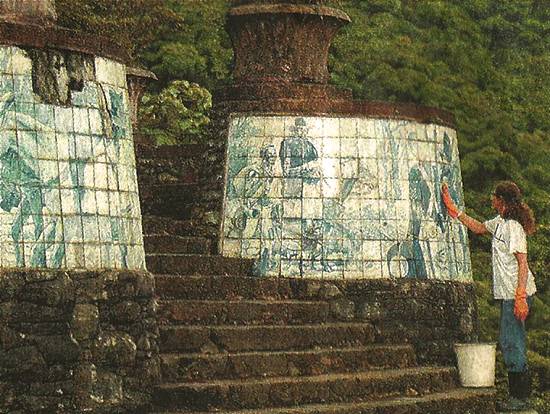 estão em fase de restauração: além de deteriorados, foram alvo de vandalismo. Até que sejam recuperados, o visitante só poderá apreciar a
