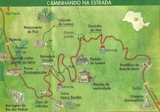 Circular, Rancho da Maioridade, Padrão do Lorena, o Pontilhão Raiz da Serra e o Cruzeiro Quinhentista. Os dois últimos já em Cubatão.