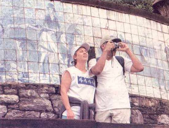 O casal Alice e Domingos aproveita a visita do Padrão de Lorena para tirar fotos
