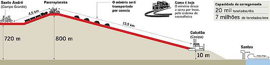 Em São Paulo, o empreendimento mais avançado é o da correia transportadora entre Paranapiacaba e Cubatão, no pátio da Cosipa. Depois de três anos, o Conselho Estadual de Meio Ambiente liberou a