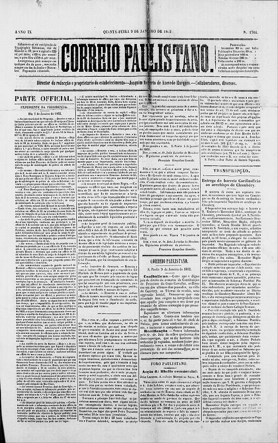 Imagem: reprodução parcial da página 1 do Correio Paulistano de 12/1/1862