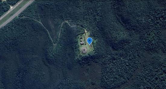 A imagem mostra a antena e seu círculo de luzes, um pouco afastada das demais instalações de apoio, protegida pela vegetação no topo de um morro ao qual conduz uma estradinha rudimentar que parte da interligação rodoviária. Comparando com imagens mais antigas da região, foi possível comprovar a inexistência, ao longo dos anos, de qualquer placa na rodovia identificando o local.
