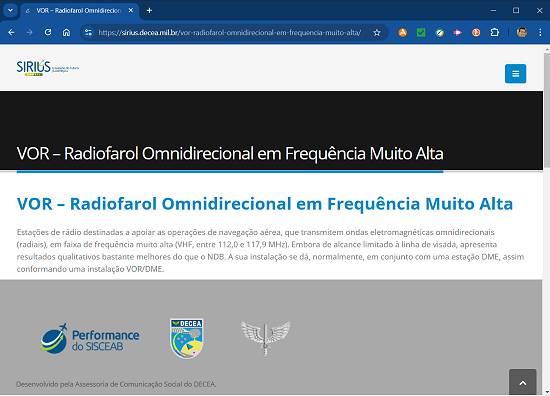 Site do Ministério da Aeronáutica brasileiro explica a instalação VOR: um radiofarol