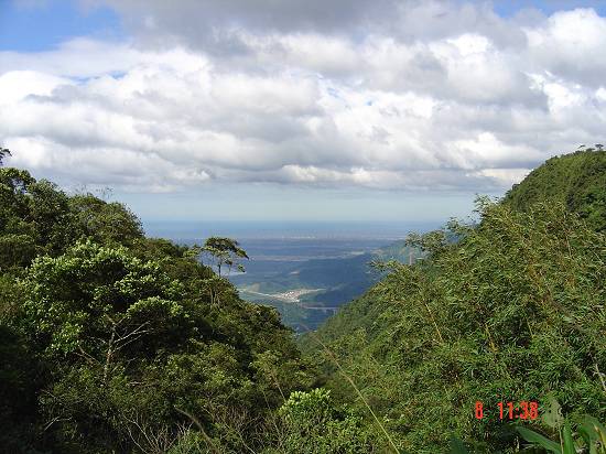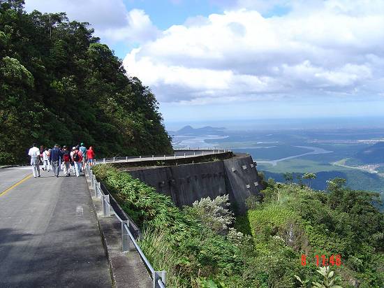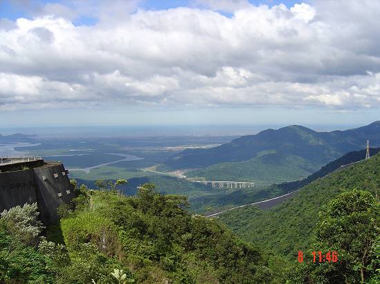 Caminho Velho do Mar, tendo a Baixada Santista ao fundo
