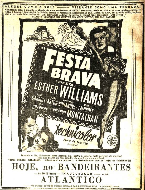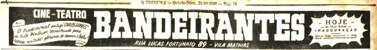 O Carlos Gomes foi reconstruído como Bandeirantes, com programação simultânea aos cinemas da praia Jornal A Tribuna, 21/10/1948, página 11