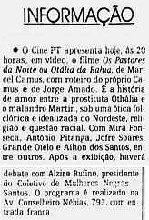 1986 – Cine PT, na Avenida Conselheiro Nébias, 793. Mantido pelo Partido dos Trabalhadores e abordando filmes e temas relacionados à sua plataforma política, apresentava em 25/8/1986, por exemplo, o filme Pastores da Noite, com entrada franca, seguido de um debate sobre os temas Discriminação contra a mulher e Racismo.