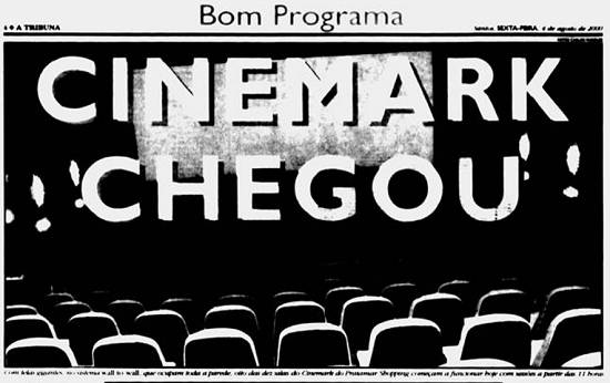 A chegada da rede Cinemark de cinemas ao centro comercial Praiamar, no bairro Aparecida, foi saudada efusivamente em matéria de jornal santista Jornal A Tribuna, 4/8/2000, página 6/cad.Bom Programa