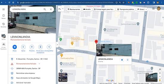 ...c.2023Cinema Lennonlandia – Rua Maranhão, 48, José Menino, "fechado temporariamente" e depois "definitivamente", conforme informações do Google Street View, respectivamente em 2023 e 2024. Não foram encontradas outras referências nas publicações disponíveis.