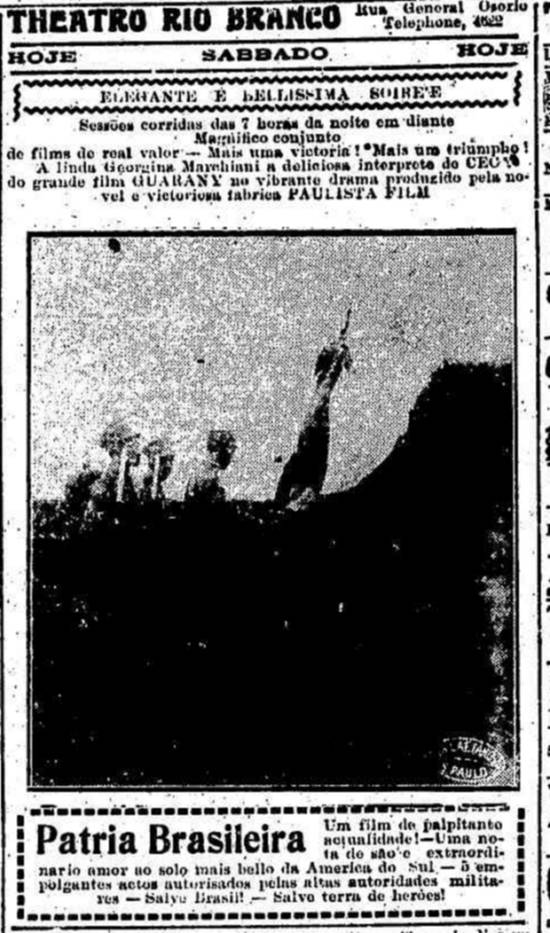 A assinatura de Bilac e o título podem oferecer um panorama bastante aproximado da patriotada que estavam cometendo em 1917. Os atores, Giorgina Marchiani e Antônio Latari,