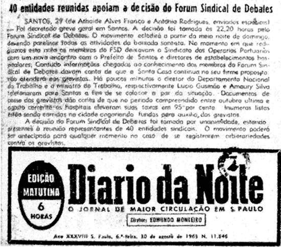 A outra notícia é do Diário da Noite, da capital paulista, em 30 de agosto de 1963: