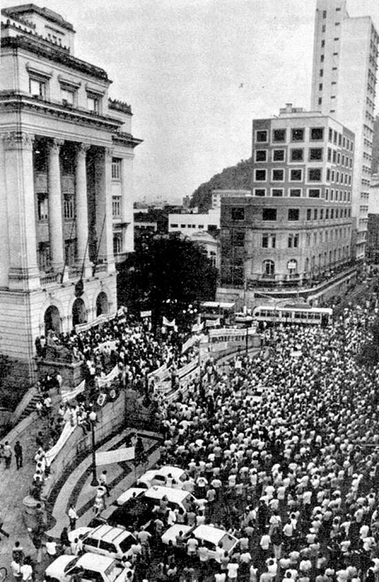 "A Praça Mauá e as escadarias da Prefeitura, em maio de 1990, voltaram a ser palco