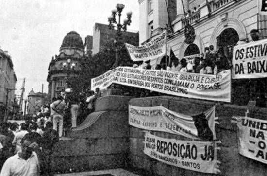 trabalho diário, em 1908, ou o boicote ao general Francisco Franco, em 1949, os portuários santistas mostraram disposições de luta. Reuniões